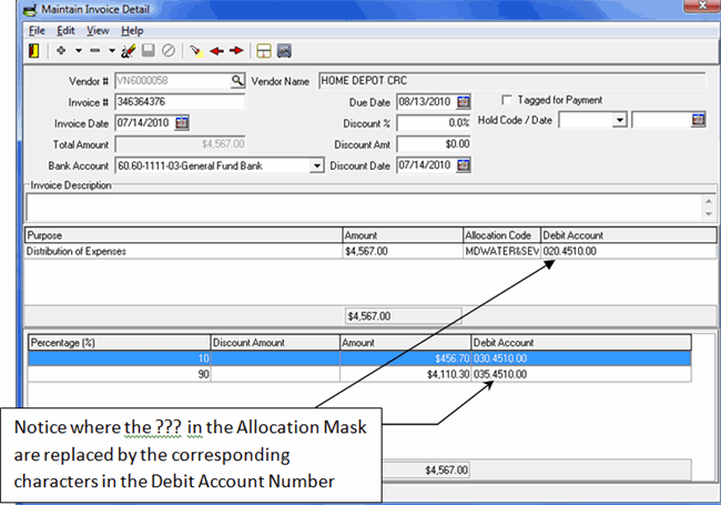 Hint: The Display Account/Mask field shows you either the specific account or the final account mask. Use it to verify that the allocation detail is correct.